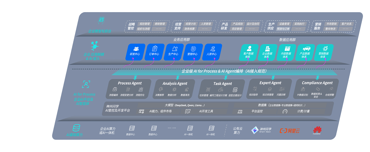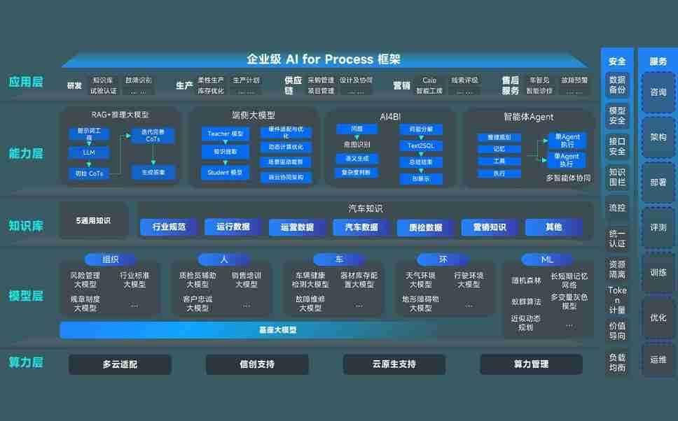征途国际问学智车解决方案是一套基于AI技术的汽车行业智能化系统,,,覆盖从底层算力到顶层AI应用的全栈方案。。方案由算力层、、、、模型层和应用层组成:算力层,,,,方案支持多种一体机配置,,,,具备云端灵活部署、、、多云适配以及动态优化计算资源的能力;模型层,,征途国际问学平台版提供了企业级AI应用一站式构建与管理平台,,,支持基于后训练强化技术的汽车企业专属模型的训练、、、、评测和运营;应用层,,征途国际问学DeepSeek版提供包括超级员工、、智能招采、、、、智能营销、、智能客服、、AI for BI等一系列解决方案,,,可助力汽车行业实现数字化转型,,,让管理更智能、、、响应更敏捷。。